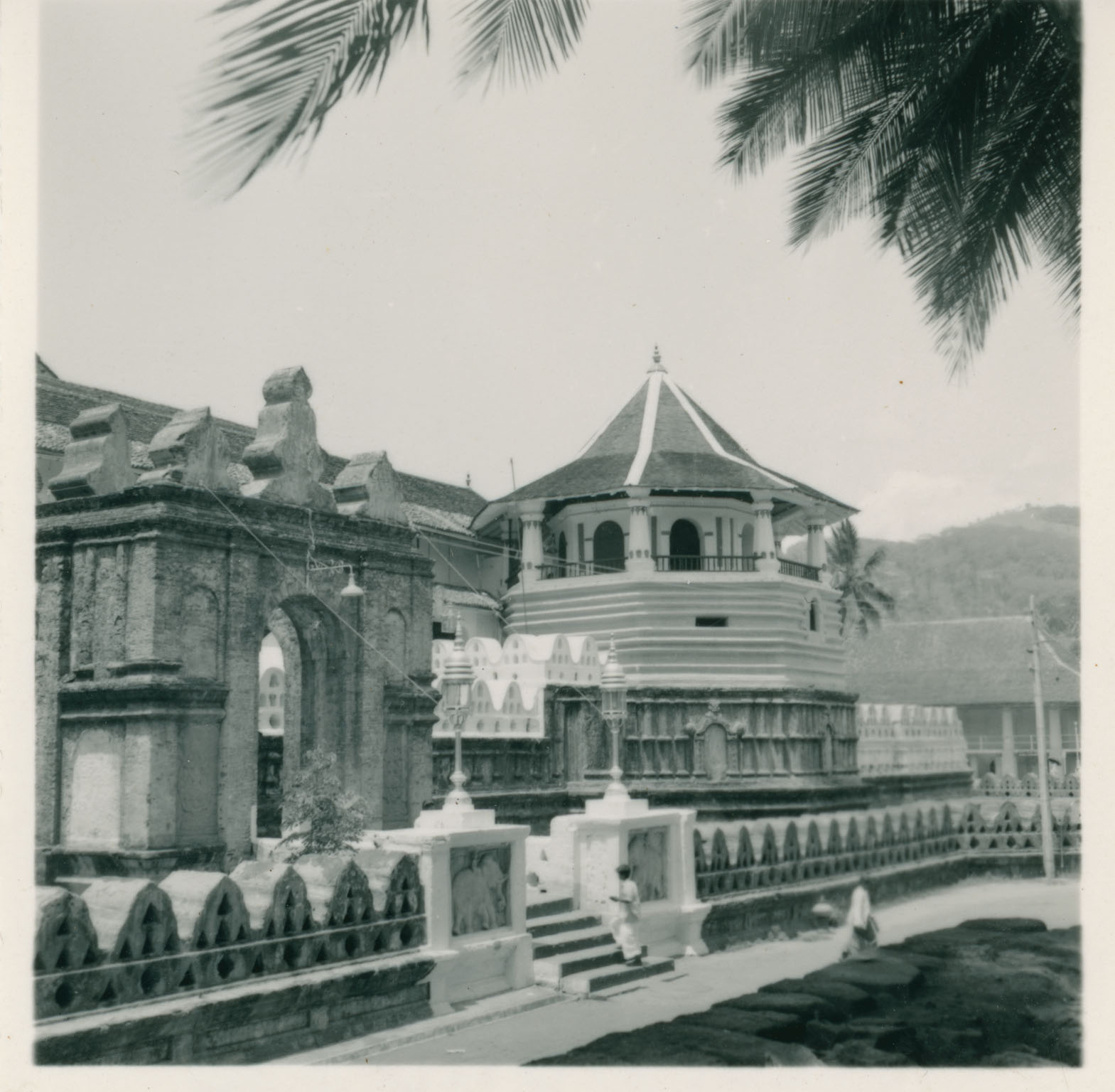 Photographie de l’entrée du Temple de la Dent réalisée par John Rhoden (John W. Rhoden, 1918–2001) en 1953. Aucune différence topographique notable n’est observable par rapport à l’image des années 1930 présentée ci-dessus.